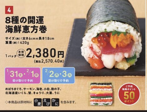 #恵方巻 #方角 #予約 #コンビニ #セブン #ファミマ #ローソン #スシロー