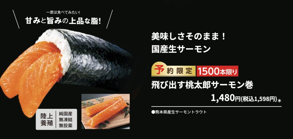 さらにサーモン特化の恵方巻も用意されており、子どもが喜びやすく実用性が高いです。