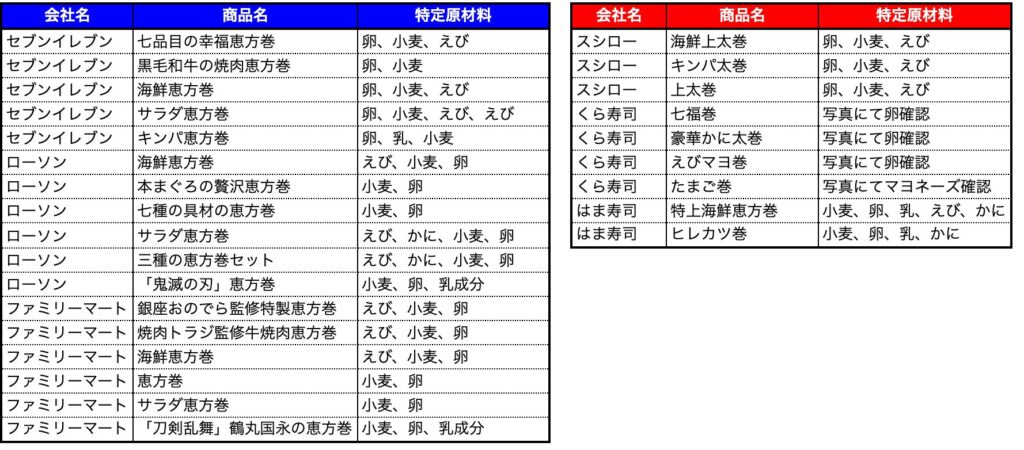恵方巻の種類も多い一方で、卵不使用の商品は限られるため、卵アレルギー家庭は事前確認が必須になります。