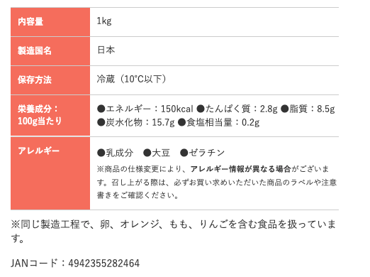 卵不使用で1kgという大容量ながら、価格は約300円と非常に手に取りやすい点が特長。