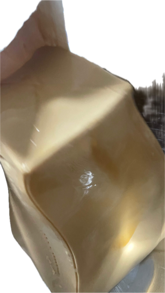 思い切って大きいボウルに流し込むと、ぷるんと切れながらも柔らかく崩れ、意外と扱いやすい印象があります。