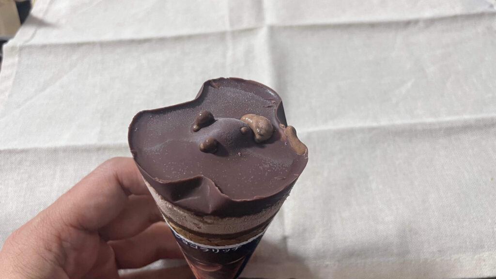 アイス部分はアイスクリーム規格で、濃厚なのに甘さ控えめ。ビター寄りの大人向けの味わいが特徴。