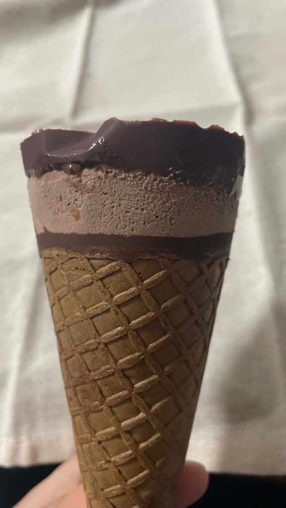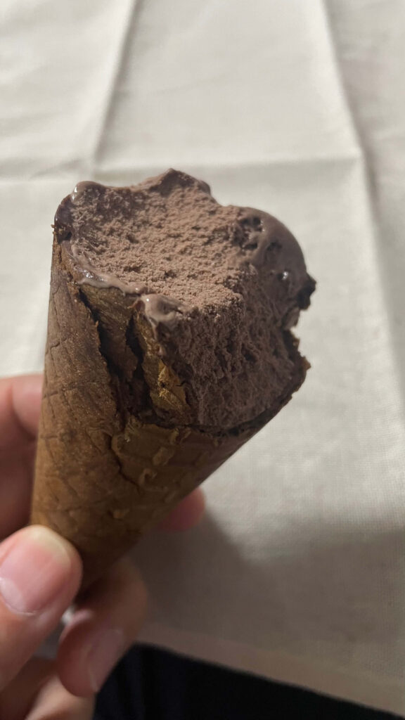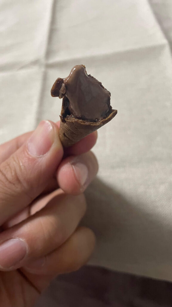 特にコーンの先端にたまる“チョコだまり”はチョコ好きにはたまらない仕上がりです。