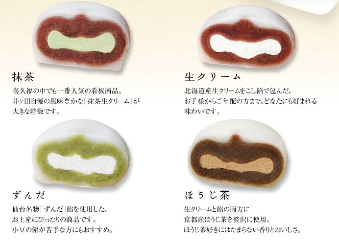 - 抹茶・生クリーム・ずんだ・ほうじ茶の4種に季節限定も登場