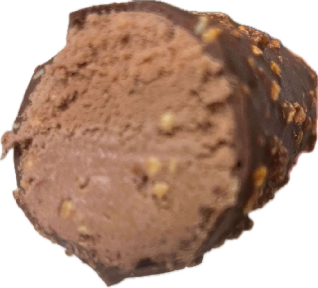 ひと口かじると、まず外側のチョコのコクがガツン。