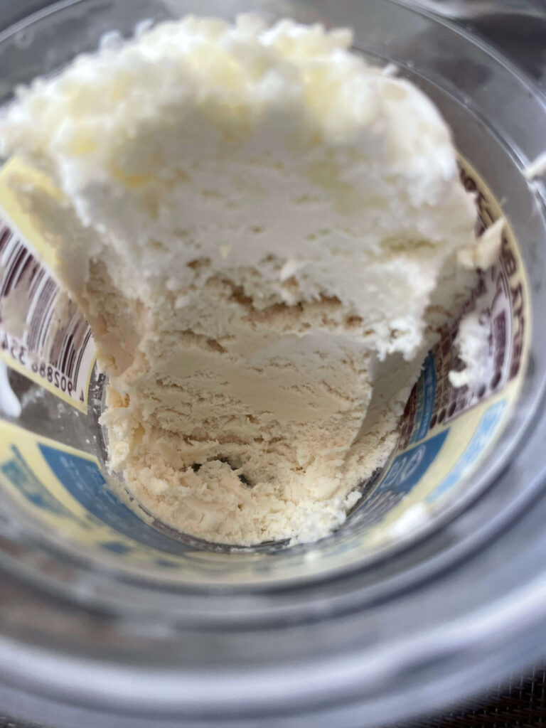 フタを開けた瞬間、まず目に飛び込むのがホイップみたいに盛られたトップのアイス。
