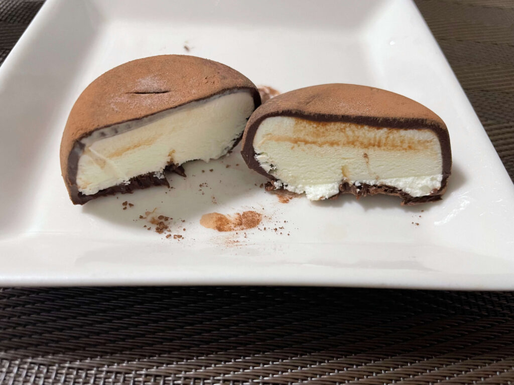 ホイップ風バニラアイスを濃厚な生チョコが包みさらにココアパウダーをふんわりまぶしたリッチな構造が特徴です。