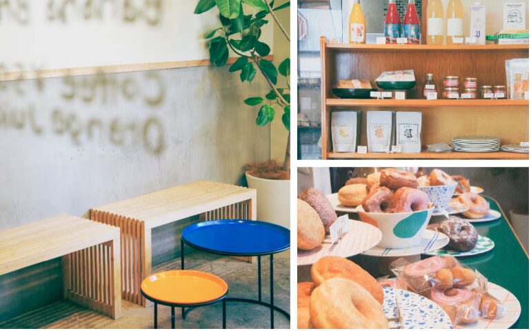 オープンでスタイリッシュな店内では、出来たてのドーナツをその場で味わえるのも魅力です。