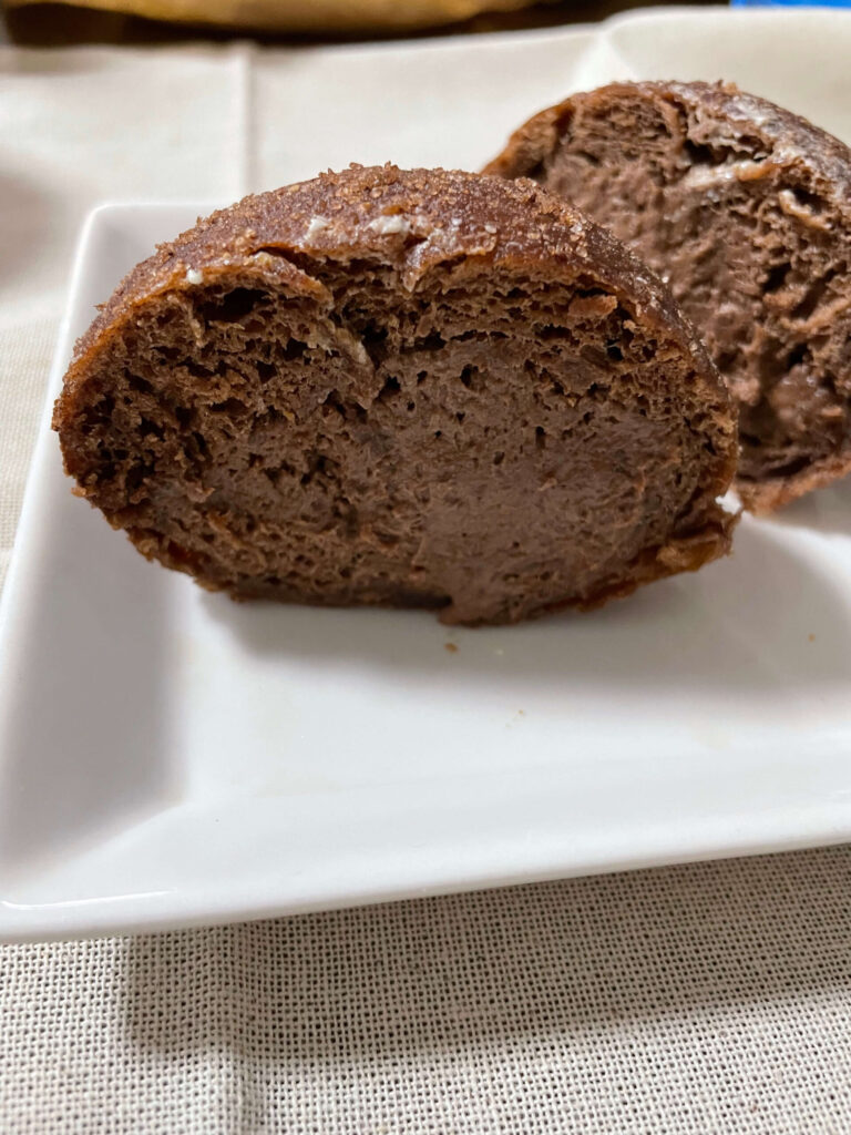 手でそっと割った瞬間、チョコクリームがドバッ…! 予想以上の量に、思わず「え、ちょっと待って、これすごい…」と笑ってしまうほど。